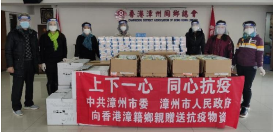 第五波疫情爆发以来,省委统战部、漳州市委统战部、漳州市台港澳办以及各县(区)领导都十分关注香港同胞的安危,纷纷发来慰问信。漳州市海外联谊会将提供了一笔抗疫基金,漳龙实业有限公司、深圳市漳州商会、诏安、长泰、南靖、华安、龙文、东山、龙海等县(区)政府等筹措抗疫物资援港,福建社团联会也赠送了一批抗疫物资。本会副理事长余敏继去年送2万个口罩后,今年再赠送2万个。长泰联谊会创会会长汤长福捐赠500个快速检测包。