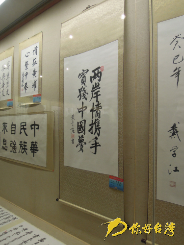 黄幸强表示,大家要珍惜两岸和平发展、全面交流的趋势和局面。他说,“历史要承传,不能中断;民族要生存;人民生活要富裕;未来子孙要幸福。两岸应携手考虑这些问题,共同在‘一中架构’、‘九二共识’的前提下,齐步向统一的目标迈进。这个目标在不久的将来必然达成。这是我们共同的愿望。”黄幸强说,“我们没有书法的专业,为了支持这次活动,台湾来的二十位将军,不管写得如何,每人都勇敢写了一幅书法。根据今年的主题,我写的是‘两岸情携手实践中国梦’”。