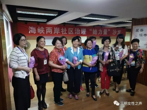 在尤溪县城关镇沈塔社区举办的社区治理“她力量”沙龙上,两岸姐妹们互相学习交流取经,并品味社区姐妹手工制作象征两岸同胞和美团圆的毛巾花和春卷点心,还深入到桂峰村考察厚重的家风家教文化和独特的建筑风格,并在将乐县共同擂一钵香喷喷的擂茶。
