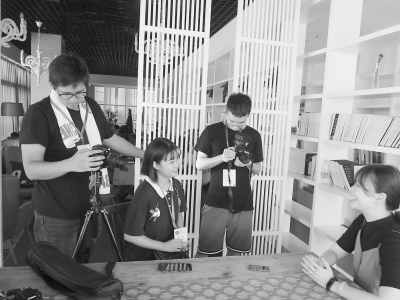 然后,张瑜哲以眼神示意福建艺术职业学院的陈聪做好准备,开始对福建网龙公司的台胞员工进行采访。