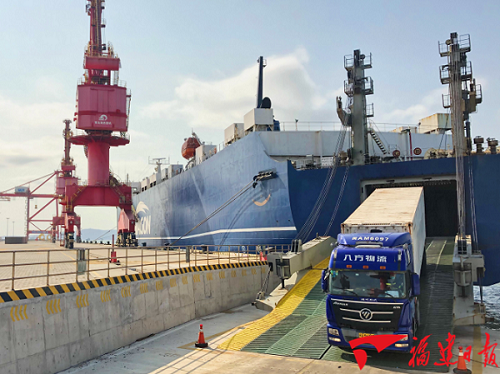 据了解,“台北快轮”是目前入境平潭港最大吨位高速货运滚装船,疫情发生以来,实验区相关部门在原有航线基础上,积极协调区内物流企业,开辟了一条新的物资运输“生命线”——岚台海空联运新通道。