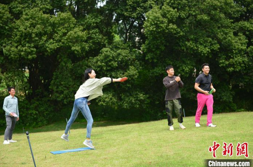 两岸青年共玩飞盘。 石美祥 摄