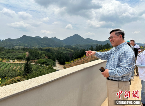 新党主席吴成典来到福州市永泰县同安镇闽台草木谷茶文化艺术中心参访。郑江洛 摄