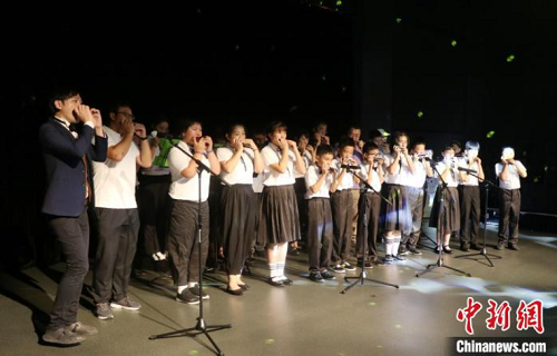 9月16日,福建省宁德市蕉城区口琴协会成员与台湾青年口琴家李让在清华大学演出。褚子强 摄