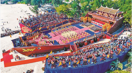 海祭妈祖祈福大典在湄洲岛下山村深澳底海祭福船隆重举行。林春盛 摄