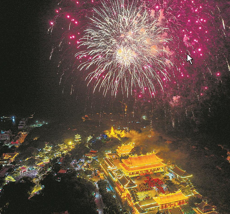 一束束璀璨的烟花在妈祖祖庙上空绽放,绚烂而美丽。 林春盛 摄