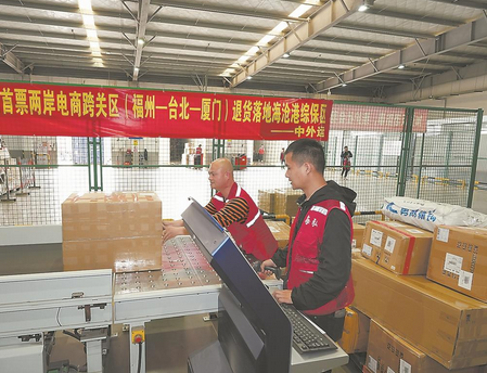 本报讯 (记者 廖丽萍 通讯员 周莹 苏小芳 文/图) 7日下午,一批来自中国台湾地区的跨境电商退货包裹进入厦门自贸片区海沧港综合保税区跨境电商监管中心,海关人员随即依法实施查验并放行,这标志着厦门口岸正式打通高效、安全的跨境电商“跨关区退货”通道,完成大陆首票对台跨境电商“跨关区退货”业务。