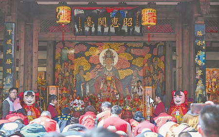 福州市仓山区的陈靖姑故居每年举行天下奶娘回娘家活动。图为两岸陈靖姑信众参加祭典活动。本报记者 游庆辉 摄