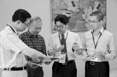 2017年3月,台湾集邮家林茂兴(左二)与莆田邮友亲切交流。