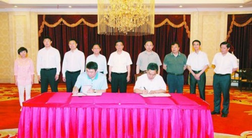 市政府与中盈基金公司签署合作协议。 (周志鸿 摄)