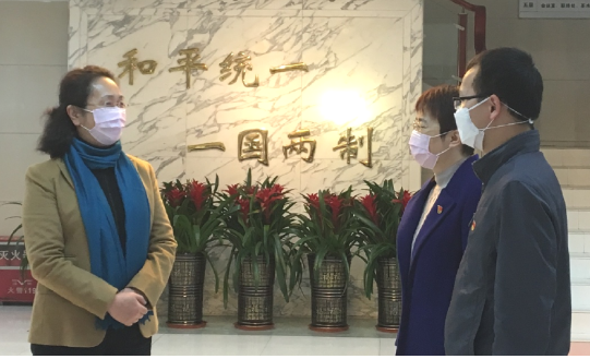 王玲主任走访立荣航空福州办事处,介绍福建省疫情防控政策,了解两岸空中直航有关情况及企业遇到的困难和问题。(三通与沿海处 摄)