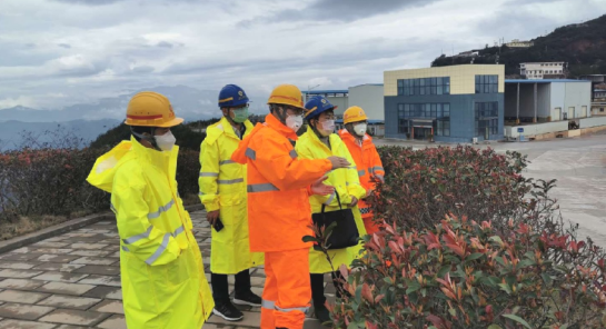 支援队员深入对口帮扶企业紫金矿业集团紫金山金铜矿察看露天采矿场疫情防控和复工复产情况。(机关党委 摄)