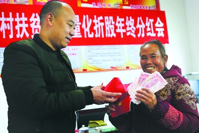建宁均口隆下村采取“扶贫资金量化折股”的形式进行精准扶贫,为贫困户分红。陈晓星 摄