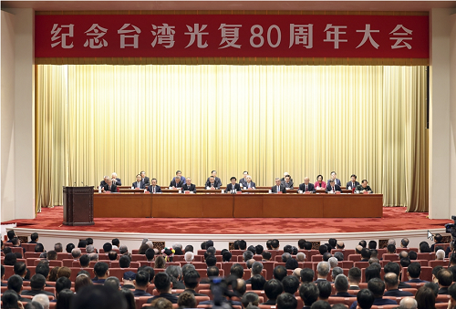 10月25日,纪念台湾光复80周年大会在北京召开。中共中央政治局常委、全国政协主席王沪宁出席并讲话。新华社记者 刘卫兵 摄