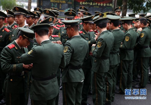 新华网福州11月29日电(见习记者 陈翊群 通讯员 钟景兵)11月29日上午,一名退伍老兵深情吻别朝夕相伴的警徽。当天,武警福建总队直属支队举行退伍老兵告别仪式,带着万般不舍与眷恋,49名士官(2010年冬季以前入伍的,满服役期)卸下帽徽、领花、警衔,戴上大红花,光荣退出现役,并向警徽告别,即将踏上回乡归途。