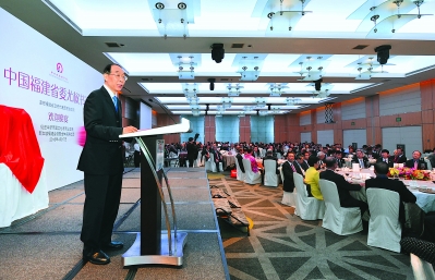 17日,省委书记尤权在新加坡福建社团举办的欢迎晚宴上致辞。记者 张永定 摄